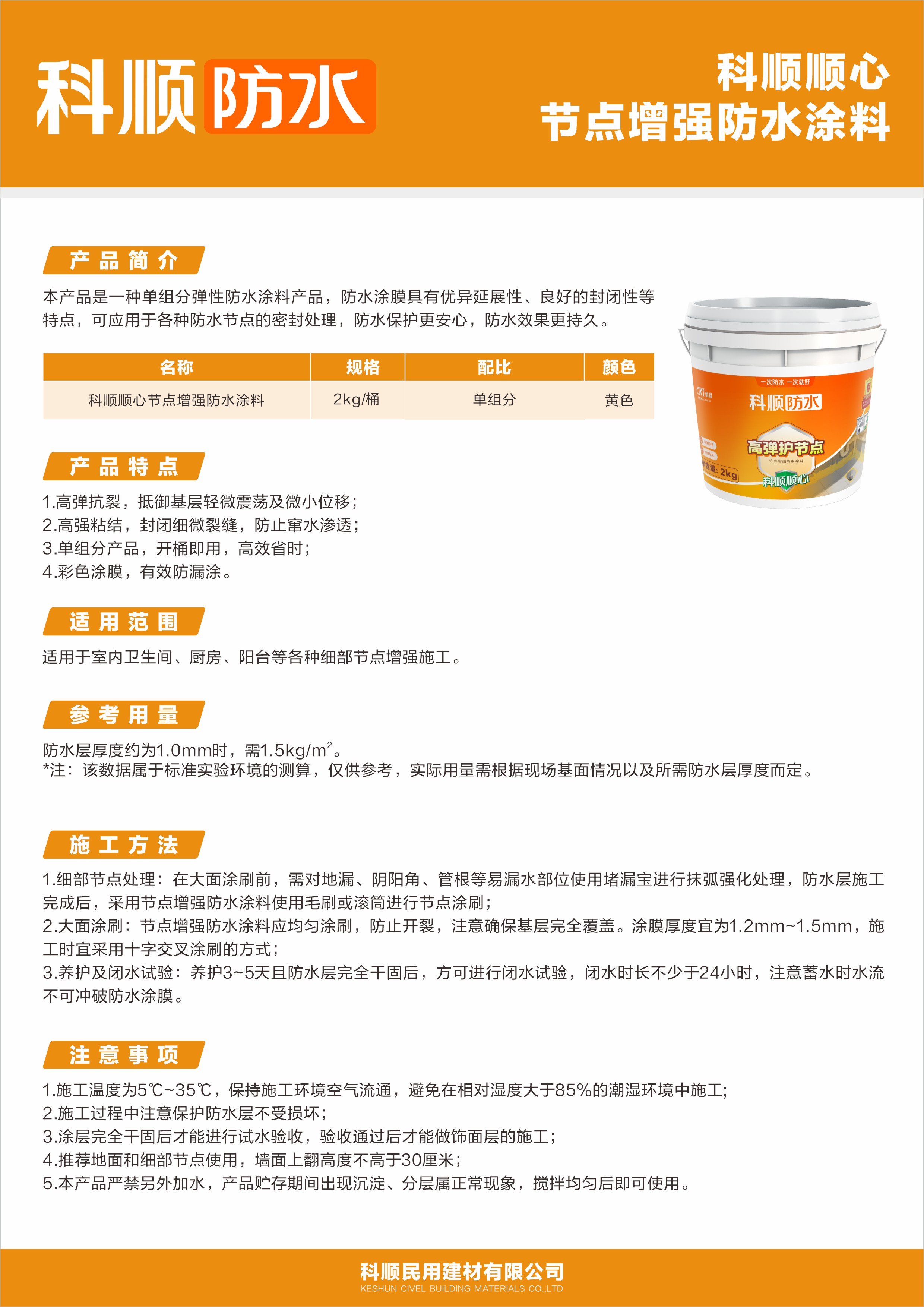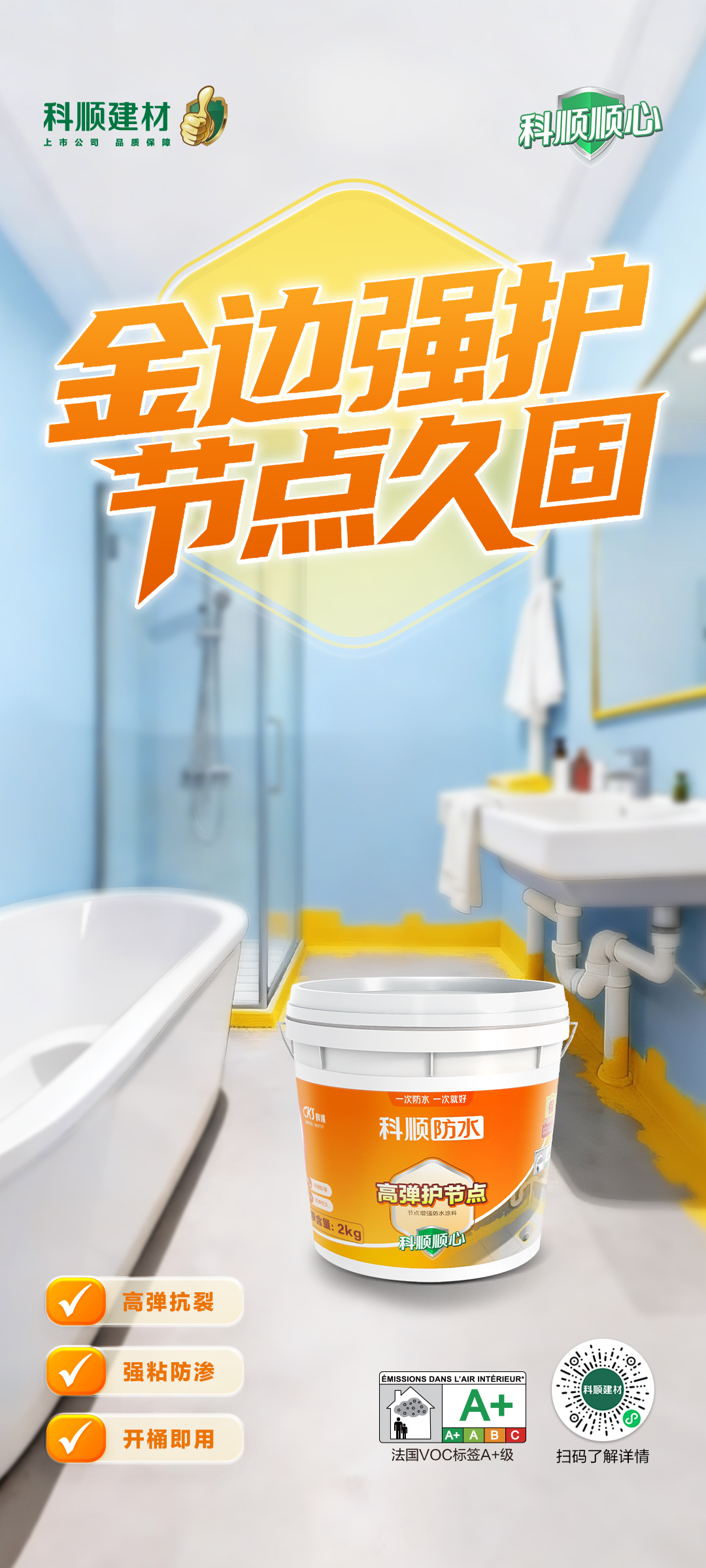 本產品是一種單組分彈性防水涂料產品,防水涂膜具有優異延展性、良好的封閉性等特點,可應用于各種防水節點的密封處理,防水保護更安心,防水效果更持久。